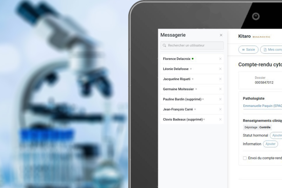 • Le module de messagerie instantanée de Kitaro permet de fluidifier les échanges entre les différents acteurs du laboratoire et des établissements de santé.